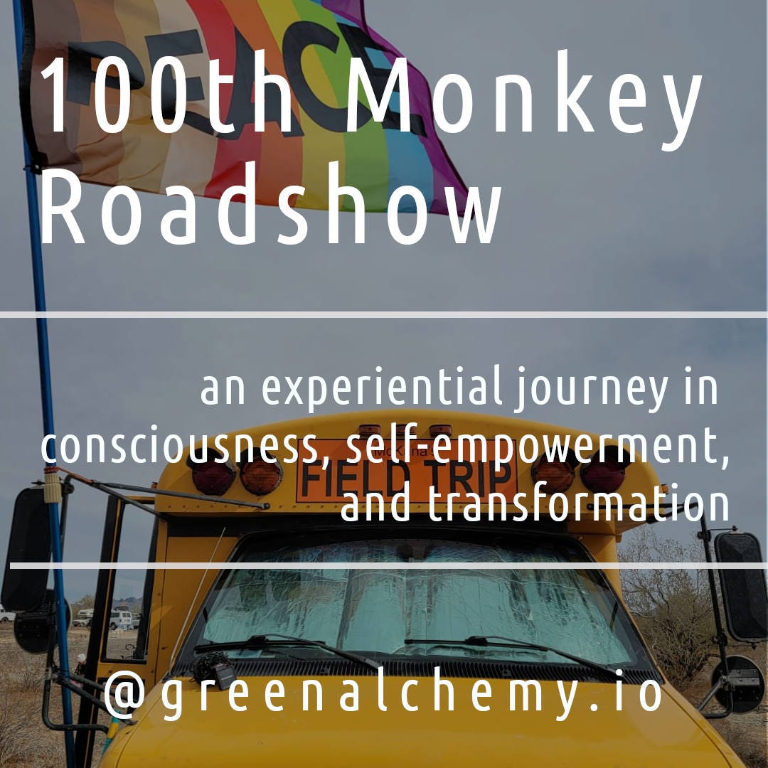 The Lorax Roadshow has taken form and a new name, The 100th Monkey Roadshow, is now an event you can book for a workshop or weekend or retreat.